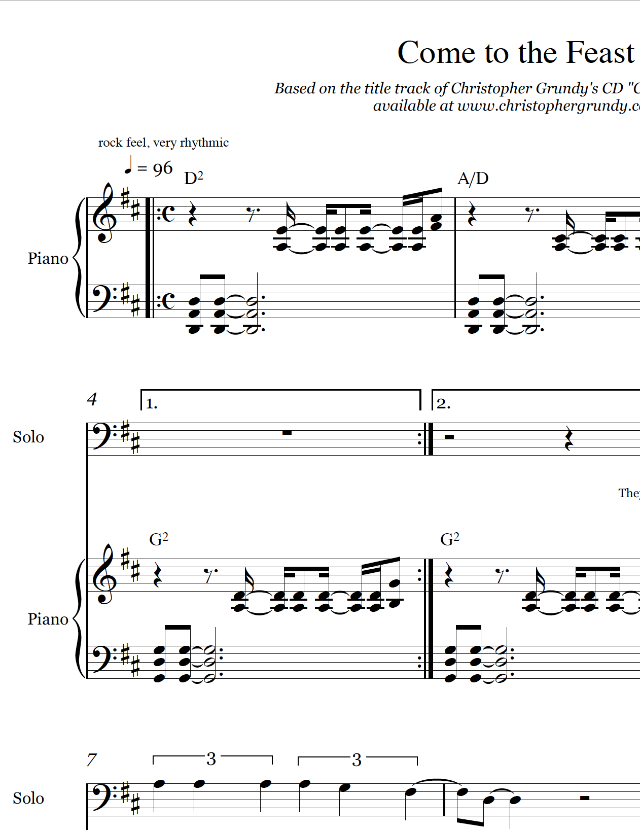 A moving, upbeat invitation to the table with a singable refrain suitable for groups, and story verses suitable for a soloist or choir. This song connects Holy Communion with contemporary issues in a way that makes it relevant for today. CCLI # 5845073