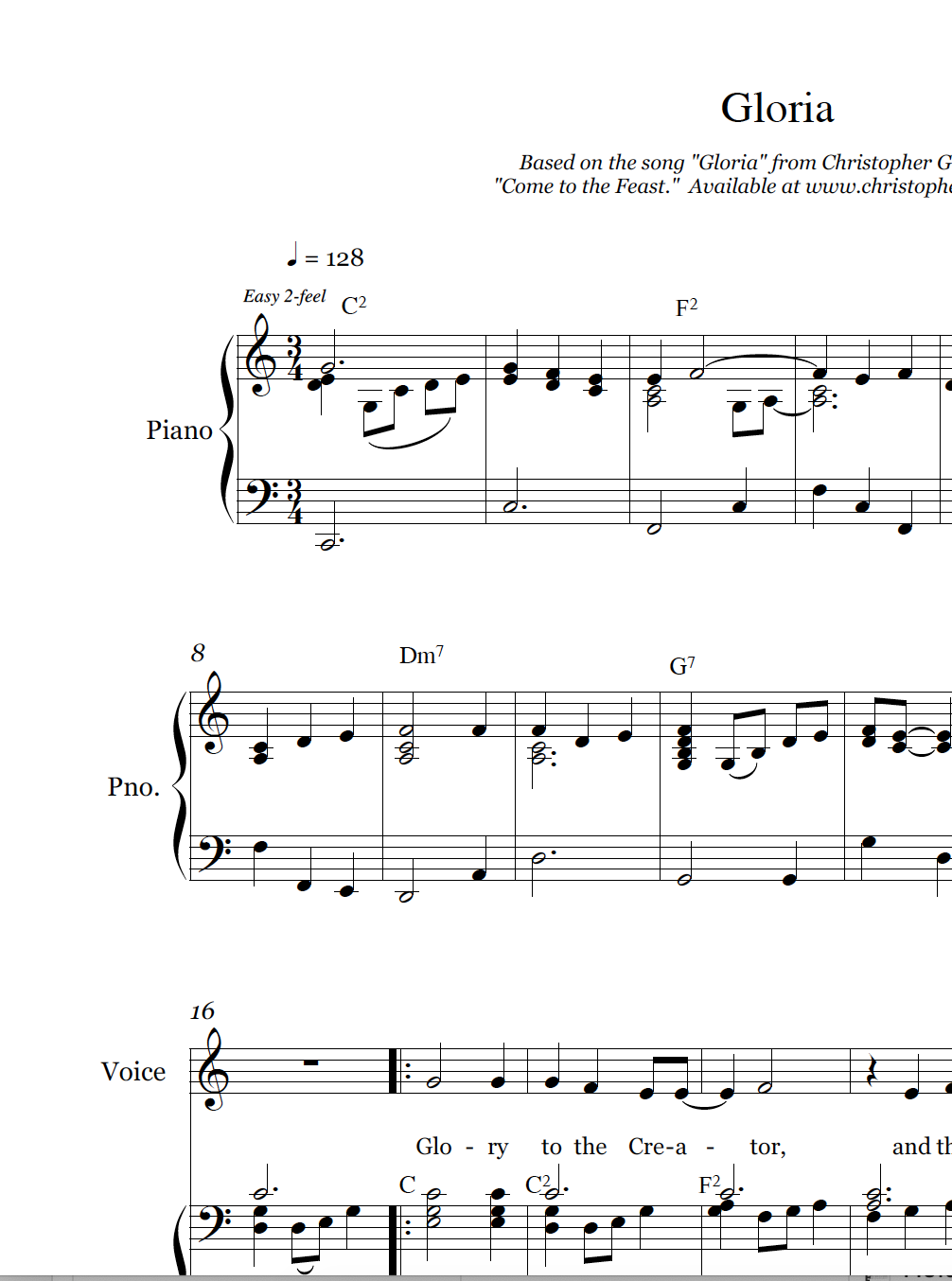 A simple, swaying refrain that updates the traditional Gloria with fresh lyrics and a contemporary tune. Used in churches across the United States every week for years.